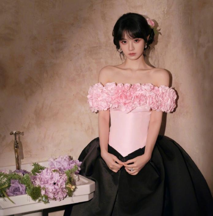 所以很多明星也会选择鲜花成为造型的点睛之笔,张予曦之前活动上的粉色礼服搭配粉色花朵盘发直接美出圈,整个人站在那儿就美到发光,精致的五官更像是雕刻而成的艺术品。